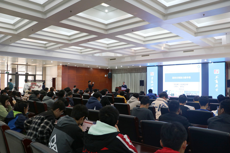 白志山着重向同学介绍了高效分离技术在石化行业碳中和过程中的重要作用。他指出为发挥减污降碳协同效应,我国石化行业应通过流程再造强化分离过程来提高石化行业中竞争力,并注重关键生产流程的绿色革新,强化全过程清洁管理,推进强化分离减排技术应用。以“减量化、资源化、无害化”为核心原则,围绕源头控制减量—关键流程再造减排—末端治理高效转化的精准管控全技术链,研究适应循环利用和污染协同控制理论体系。此外,他还向各位同学送上了自己的祝福,并告诉大家幸福是奋斗出来的,青春是用来奋斗的,唯有奋斗才有“诗和远方”。