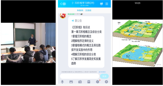 精选课程重品质。课程组坚持“以学生为中心”,努力把最优秀的教学资源提供给学生。开课前2周,教师们将国内同类视频课程资源悉数学习一遍,从教学内容、教学效果、大纲匹配度等多方面优中选优,选定国家教学名师、国家精品课程——中国石油大学(北京)朱筱敏教授的岩相古地理课程,充分展现课程魅力,保证学生学习效果。
