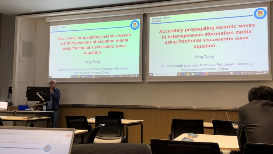 受英国皇家科学院院士,帝国理工学院王仰华教授邀请,院长王维红教授于5月31日率队前往伦敦储藏地球物理中心(CGR)进行学术交流。会上,王维红院长听取了储藏中心13个特约报告,并就其中若干关键技术问题与相关学者进行深入探讨。我院青年教师王宁做了题为“Accurately propagating seismic waves in heterogeneous attenuation media using fractional viscoelastic wave equation”的学术报告,详细介绍了我校在复杂强衰减介质地震模拟方面的最新进展,研究成果获得来自帝国理工学院,美国阿巴马大学,中国石油大学(北京),斯伦贝谢公司,中石化南京物探院等单位专家学者的一致肯定。