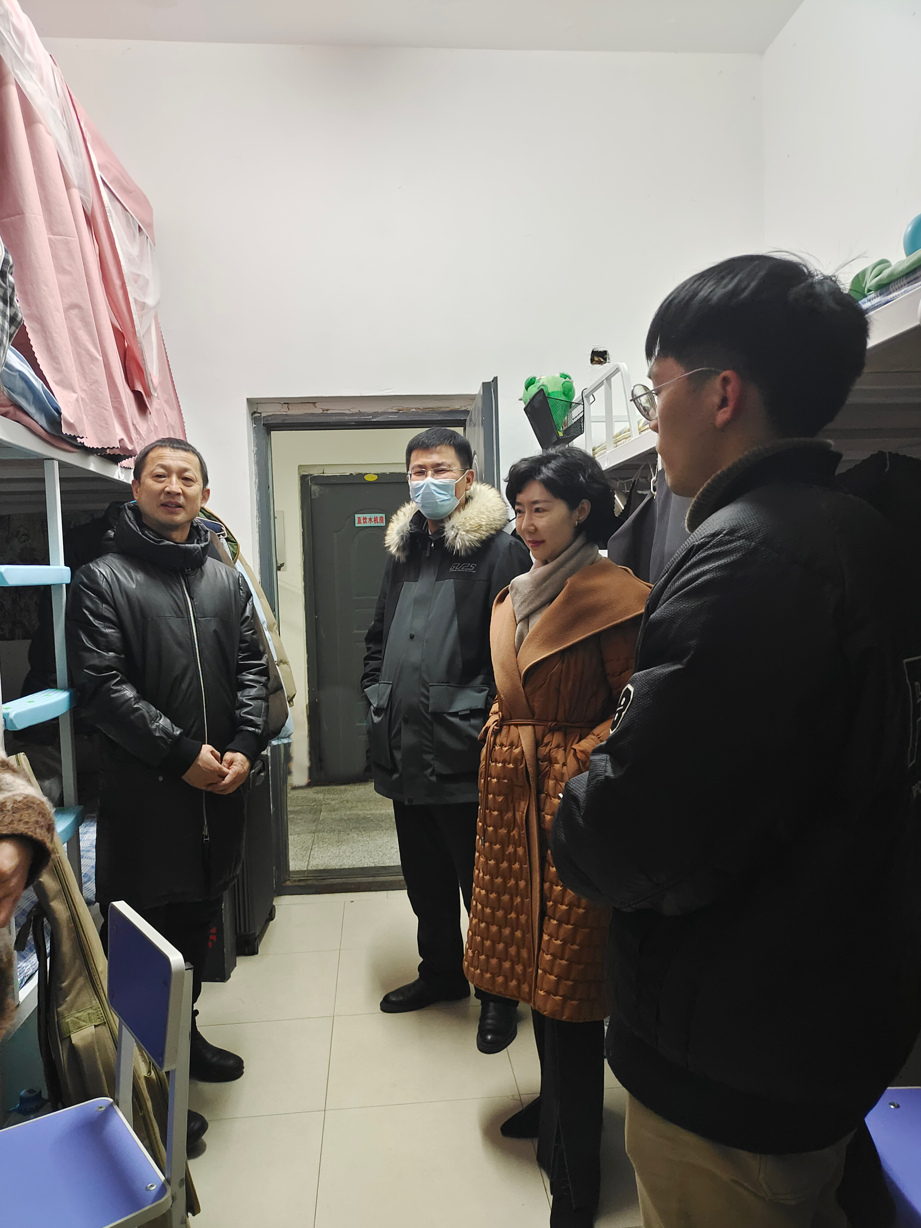 走访宿舍期间,学院党委书记韦丹宁详细询问了学生们的寒假生活、新学期学习计划。副院长孙雨仔细聆听了同学们关于学院、学校的意见建议,以及新学期的愿望和需求,对同学们提出学业、就业方面的问题做出指导。副书记王钢叮嘱辅导员要给予学生们更多关心关注,切实做到围绕学生、关照学生、服务学生,同时,要全面排查梳理学生宿舍中存在的隐患,高度重视学生寝室用电安全情况。