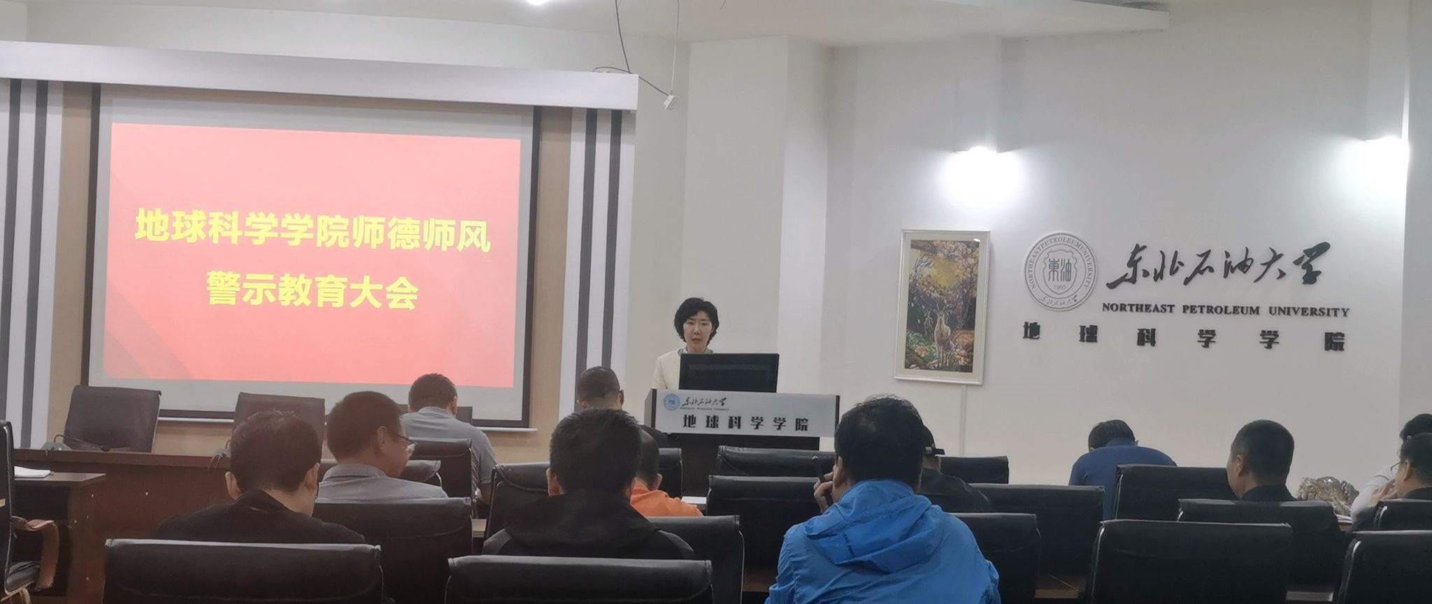 按照习近平总书记关于把师德师风作为评价教师队伍素质第一标准的重要指示精神,根据学校《师德师风专项整治工作方案》安排,5月24日下午,beat365官网在地科馆511召开师德师风警示教育大会,全院教职工参加会议,大会由学院党委书记韦丹宁主持。