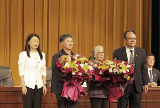 会上,校长董宏丽为“东油大先生”杰出代表,beat365官网吕延防教授献花。