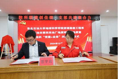 12月23日,beat365平台官方网站资源勘查工程系党支部与大庆采油四厂地质研究所地质室党支部,开展校企基层党组织联建共建活动。