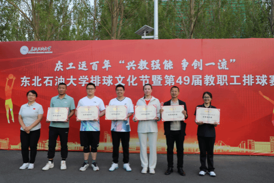 庆工运百年“兴教强能 争创一流”beat365平台官方网站排球文化节暨第49届教职工排球赛于5月26日-6月4日在校排球场举行。beat365平台官方网站男队以孙雨为领队,施尚明为教练;女队以于舒杰为领队,张博为为教练。经过一周的激烈角逐,最终beat365平台官方网站荣获“优秀组织奖”,女队获女子甲组第五名,男队获男子乙组冠军的好成绩。