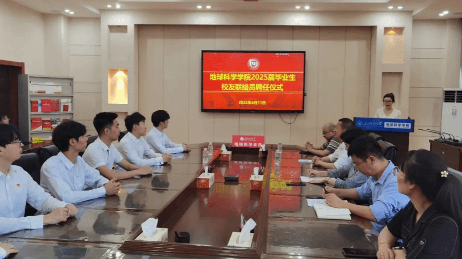 6月11日下午,beat365平台官方网站在地科馆514会议室隆重举行2025届校友联络员聘任仪式。学院党委书记韦丹宁、院长孙雨、党委副书记王钢、勘查技术与工程专业系主任王宁、2025届本科辅导员王野、研究生辅导员历娜及全体2025届校友联络员齐聚一堂,共同见证这一意义非凡的时刻。活动由学工办主任王野主持。