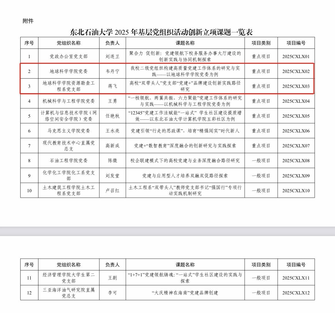 近日,我校公布了2025年基层党组织活动创新立项评审结果,beat365官网党委申报的《我校二级党组织构建高质量党建工作体系的研究与实践——以beat365平台官方网站党委为例》、资源勘查工程系党支部和勘查技术与工程系党支部联合申报的《高校“双带头人”党支部“党建+”品牌建设创新实践路径研究》成功获批重点项目。