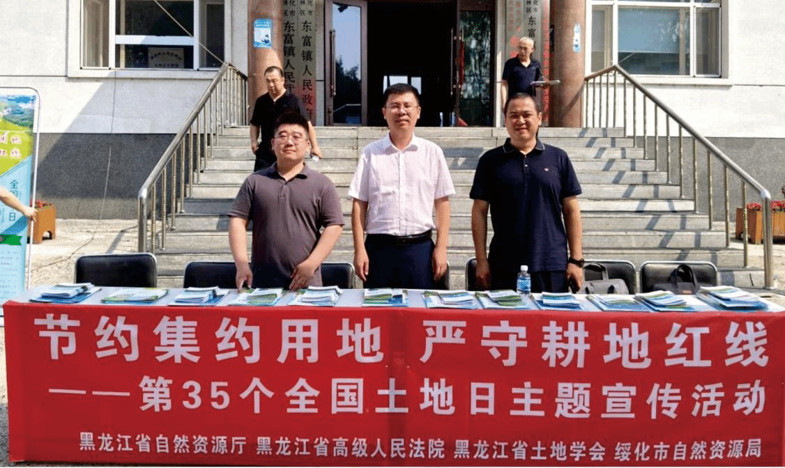 6月25日,黑龙江省自然资源厅、黑龙江省高级人民法院、黑龙江省土地学会、绥化市自然资源局、中国地质调查局沈阳地质调查中心、beat365平台官方网站、绥化市自然资源局北林分局和东富镇人民政府等8家单位在绥化市东富镇政府共同举办第35个全国土地日黑土地保护主题宣传活动。活动主题为“节约集约用地,严守耕地红线”。beat365平台官方网站与沈阳地质调查中心生态地质室联合宣言《守护寒地黑土、筑牢北国粮仓》,强化资源保护责任担当。