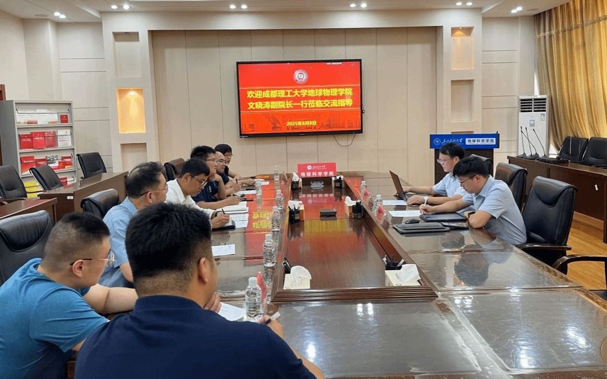 8月8日下午,成都理工大学地球物理学院副院长文晓涛一行到beat365官网走访调研。副院长王海学、吴海光,勘技系主任王宁,勘技系教授王维红、刘淑芬等参加座谈。王海学主持会议。