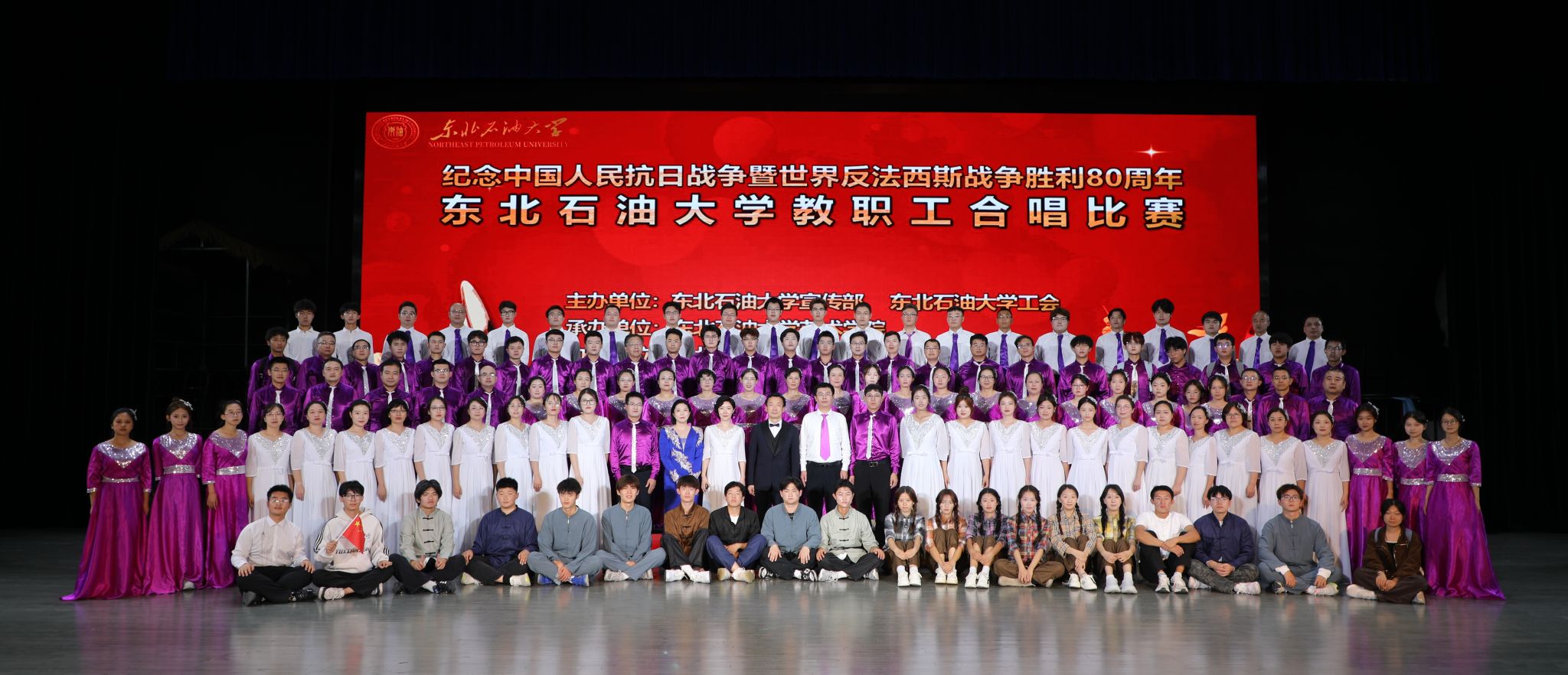 比赛现场,地科院合唱队以经典抗战歌曲《地道战》拉开表演序幕。队员们精神饱满、声部协调,用铿锵有力的旋律再现了抗日战争时期军民同心、智勇抗敌的壮阔场景,歌词中“地道战,嘿,地道战,埋伏下神兵千百万”的激昂曲调,瞬间将现场观众带回那段烽火岁月,引发强烈情感共鸣。随后演唱的《勘探队员之歌》,则巧妙结合地科院“石油报国”的学科使命,“是那山谷的风,吹动了我们的红旗;是那狂暴的雨,洗刷了我们的帐篷”的歌词,生动诠释了一代代东油勘探人扎根一线、为国找油的奉献精神,将抗战精神与铁人精神、勘探精神紧密相连,展现出独特的院系文化内涵。