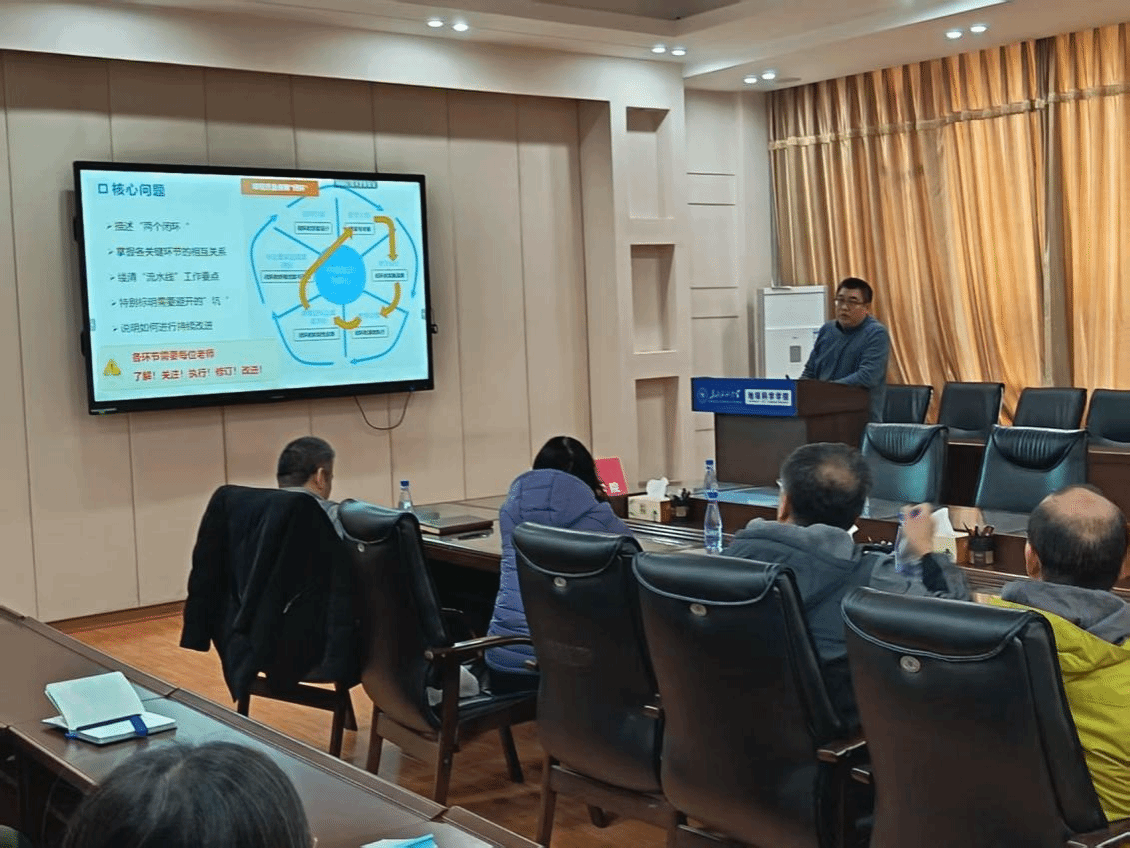 韩刚老师结合实践,系统阐释了培养方案、教学大纲与课程达成度计算三者之间形成的“双闭环”有机关系。他指出,“设计-实施-评价”构成微观课程闭环,而“培养方案-课程体系-达成度总评”则构成宏观育人闭环,二者协同实现“目标引领-过程支撑-结果反哺”的持续改进机制。他强调,培养方案是顶层设计,教学大纲需精准对标毕业要求,达成度计算则是关键的数据反馈纽带。韩老师还提醒在操作中应避免方案与大纲脱节、考核方式单一、数据不规范、分析流于形式等常见问题,并详细讲解了课程目标达成度的科学计算方法,强调过程应透明、可追溯,以真实反映课程目标的整体达成情况。