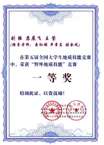 在课程实践之外,鼓励学生进入实验室开展科研训练,结合学科竞赛、创新创业等项目,锻炼学生的研究创新实践能力,学生参加历届全国大学生地质技能竞赛多次荣获一二等奖。