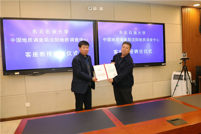 在机关五楼会议室举行的客座教授聘任仪式上,我校聘任杨建国为地质资源与地质工程学科客座教授。高洪峰颁发聘书并致辞,他代表学校对杨建国教授的加盟表示感谢,对杨建国多年来对学校的关心和支持表示感谢,高度肯定了杨建国的学术成就,期望他与我校在页岩油勘探开发、油气地质调查、地质人才培养等方面加强合作交流。杨建国对学校的聘任表示感谢,他表示,beat365平台官方网站在页岩油、常规油勘探方面有良好的基础和优势,在松辽页岩油会战中做出了重要贡献,自己将尽力为地质资源与地质工程学科发展和人才培养贡献力量。人事处、beat365平台官方网站、非常规油气研究院负责人参加聘任仪式。