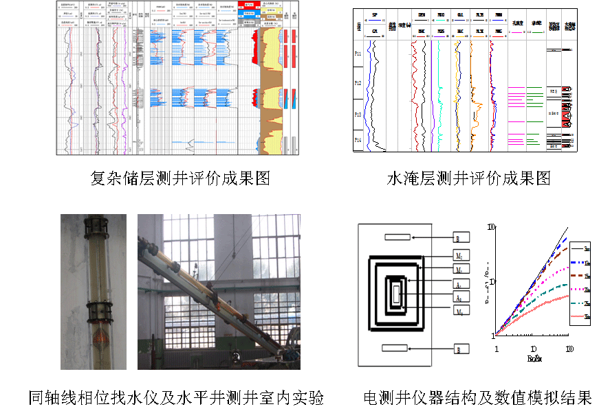 研发了11项“核心技术”:(1)混合泥质砂岩人造岩样压制与成型技术,(2)低孔低渗低阻泥质砂岩饱和度定量评价技术,(3)复杂岩性测井评价技术,(4)基于状态空间模型、沉积韵律控制、动静结合、测录结合的水淹层精细评价技术,(5)同轴线相位找水仪,(6)电测井数值模拟技术,(7)核测井数值模拟技术,(8)核磁共振T2谱反演及流体识别评价技术,(9)基于油藏描述的测井剩余油预测技术,(10)地应力空间分布测井预测技术,(11)聚驱、三元复合驱水淹层岩石物理实验技术。