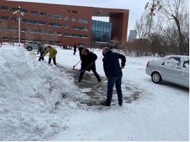 2021年11月8日-10日,一场突如其来的暴雪袭击了美丽的百湖之城大庆,路上积雪达到了近30厘米深,给市民的生活出行带来了很大的麻烦。为响应大庆市的清雪号召,2021年11学10日上午10点勘查技术与工程系教师党支部组织支部成员在beat365平台官方网站门前到主干道方向进行了清雪志愿活动。支部成员纷纷放下手中的工作,拿着工具参与到清雪志愿活动中来。