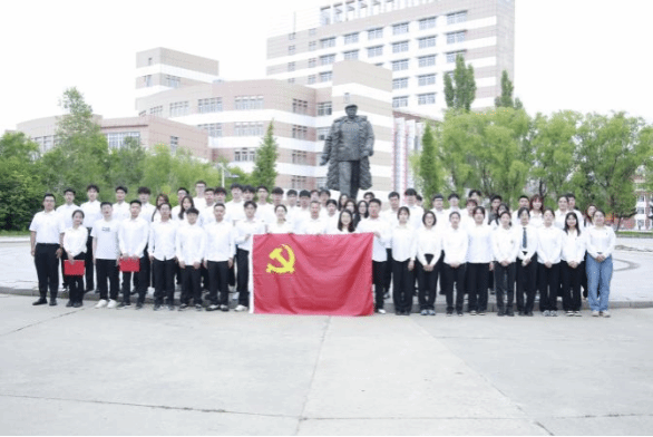百年征程波澜壮阔,百年初心历久弥坚。从一叶扁舟到巍巍巨轮,中国共产党即将走过103年光辉岁月。在第103个党的生日即将到来之际,为进一步弘扬伟大建党精神,坚定党员不忘初心跟党走的理想信念,发挥党建引领和优秀党员模范带头作用,重温党的光辉历史,6月24日上午9:00,beat365平台官方网站大学生第一党支部书记冯丹老师带领大学生第一、二党支部全体党员及研究生党支部党员代表在图书馆前铁人王进喜雕像处开展庆祝建党103周年主题党日活动。学院党委副书记王钢、团委负责人王野两位老师以党支部党员身份参与此次活动。