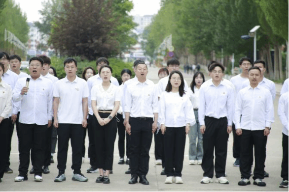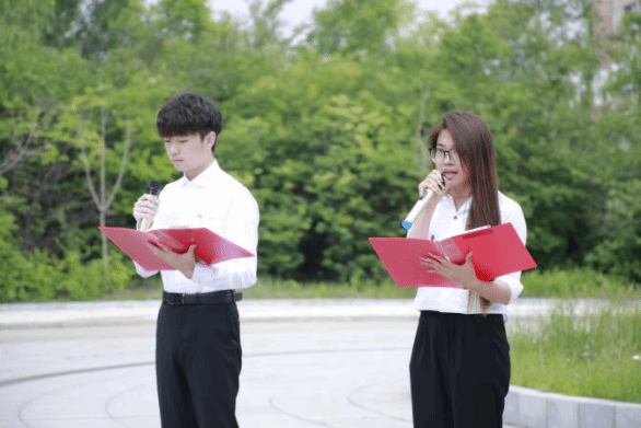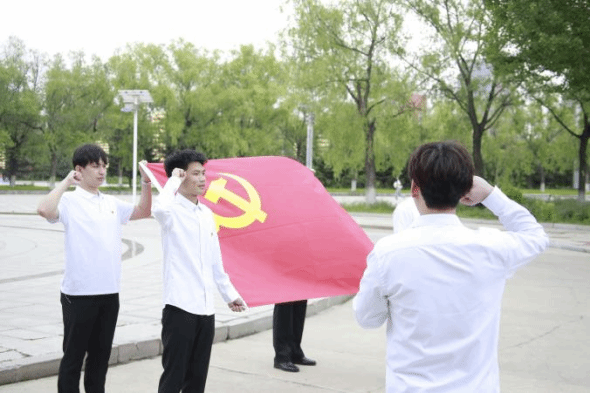 本次庆祝建党103周年主题党日活动分为四部分,首先由丁坤,殷晓蕾带来诗朗诵《党的赞歌》,将现场党员的思绪带回到那个血雨腥风的年代,共产党人披荆斩棘,力挽狂澜,给祖国和人民带来幸福的曙光;随后由郭琪带领现场党员重温铁人的故事,“随时准备为党和人民牺牲一切”的铮铮誓言,破冰端水保开钻,奋不顾身压井喷,正是铁人王进喜对党和人民赤诚之心的真实写照;随后,全体党员合唱歌曲《没有共产党就没有新中国》,正如铿锵有力的歌词所言,没有共产党就没有新中国,正是有了革命先烈的前赴后继、奋勇前行,才有了我们今天的美好生活;最后,所有党员同志面向鲜红的党旗,由巴·道尔加拉同学带领大家共同重温入党誓词。