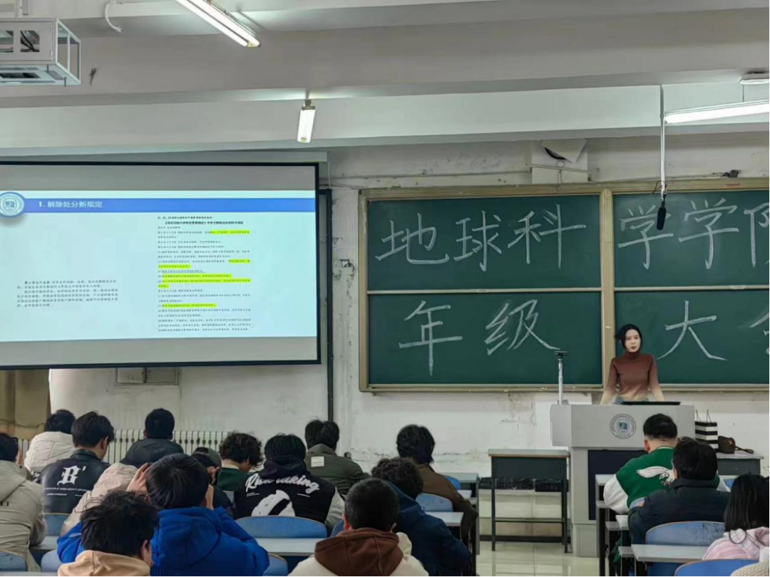 李海悦首先向学生们解读了新行的《beat365平台官方网站日常行为规范》,要求学生们严格遵守校纪校规,履行学生的义务。她又以王进喜、黄大年两位模范同志为例,激发学生为党为人民奉献的激情,通过引用往年数据告诉学生要主动找准大学的目标,提前做好学业与生涯规划;激励学生们以学习为中心,学会不断提升和完善自我,做到思想端正、信念坚定,走全面发展之路。最后,李海悦对学生们上学期的成绩作了整体评价。通过数据分析与往届优秀学长学姐成绩进行对比,生动形象地展示了各班优良率与及格率、四六级通过情况,激励学生们向优秀的学长学姐学习。除此之外还嘱咐上学期的考试中没有取得满意成绩的学生既要认真审视过去,又要敢于放下过去,学会重拾前进的信心,只要努力,永远都不算太晚。会议结束,同学们致以热烈的掌声。