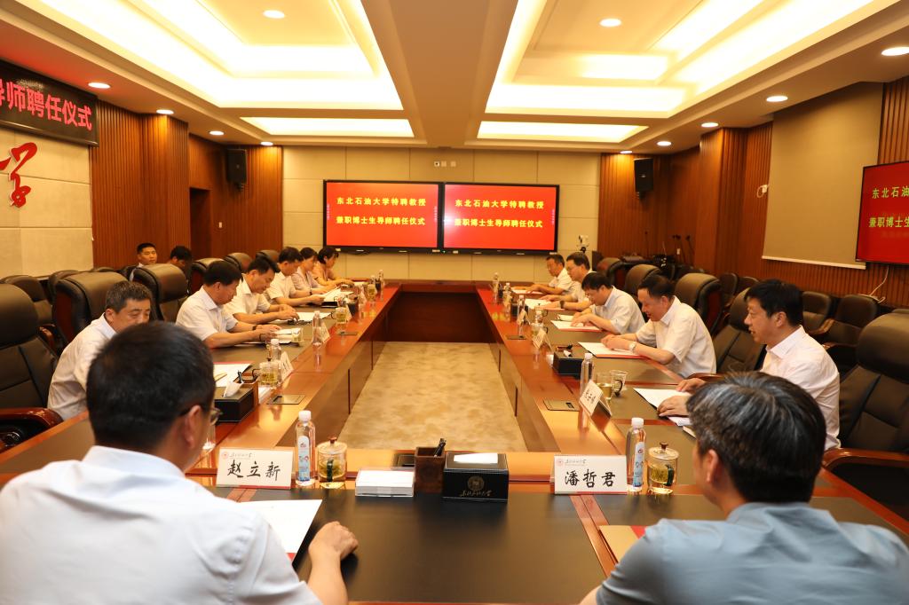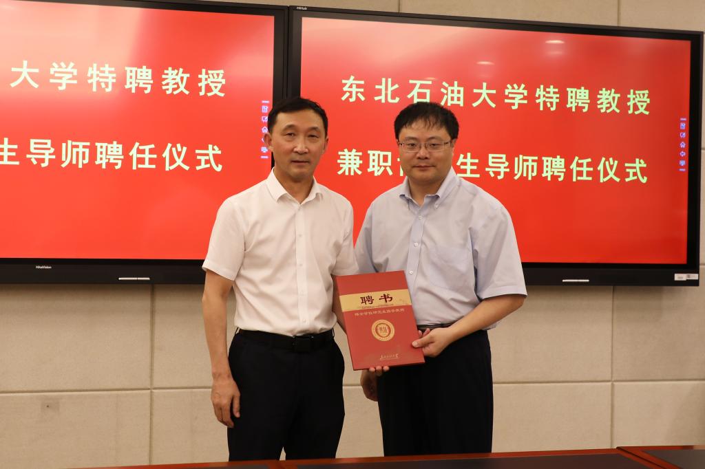 (文/图 吕鸿浩)7月16日,我校在机关5楼会议室举行聘任仪式,大庆油田党委常委、大庆油田有限责任公司(大庆石油管理局有限公司)副总经理兼总地质师何文渊受聘为我校特聘教授、兼职博士生导师。大庆油田有限责任公司首席技术专家、我校提高采收率研究院名誉院长程杰成,大庆油田有限责任公司技术发展部主任王刚,我校领导孙明学、蒋明虎、高洪峰、董宏丽及科研处、人事处、研究生部、beat365平台官方网站、石油工程学院、非常规油气研究院等单位相关负责人参加聘任仪式。副校长高洪峰主持聘任仪式。