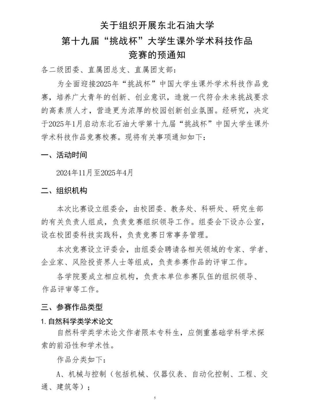 关于组织开展beat365平台官方网站第十九届“挑战杯”大学生课外学术科技作品竞赛的预通知