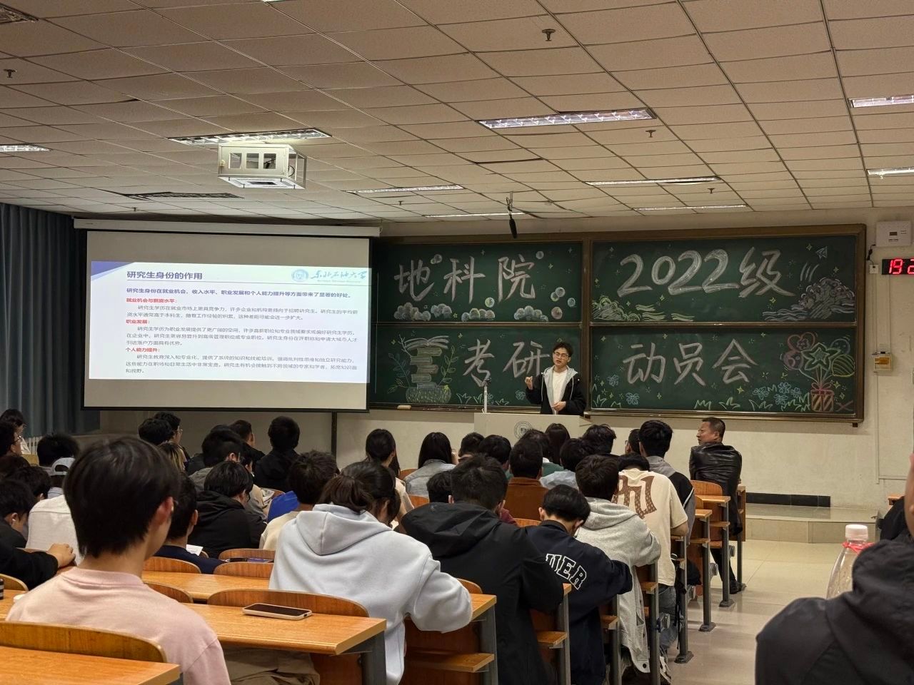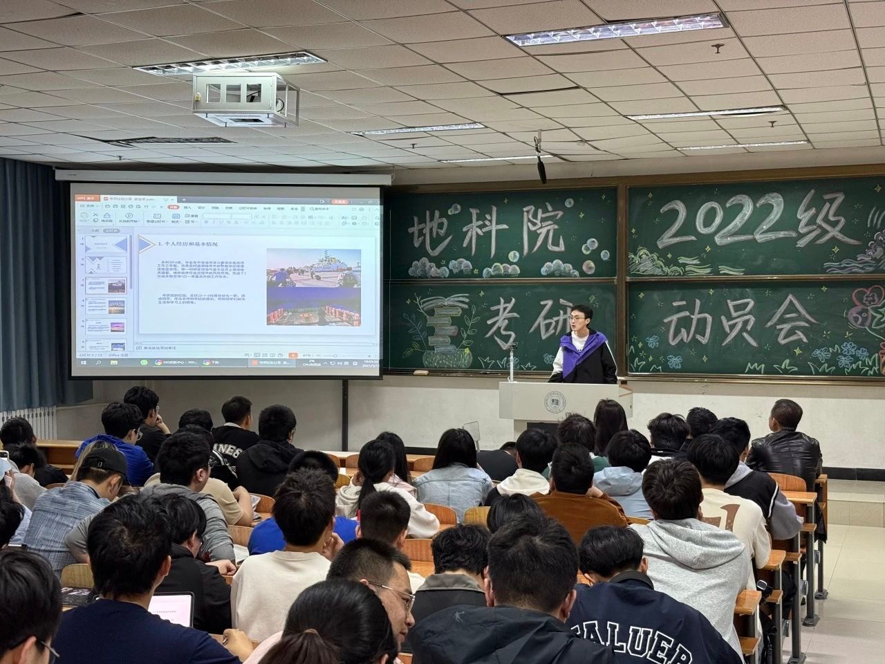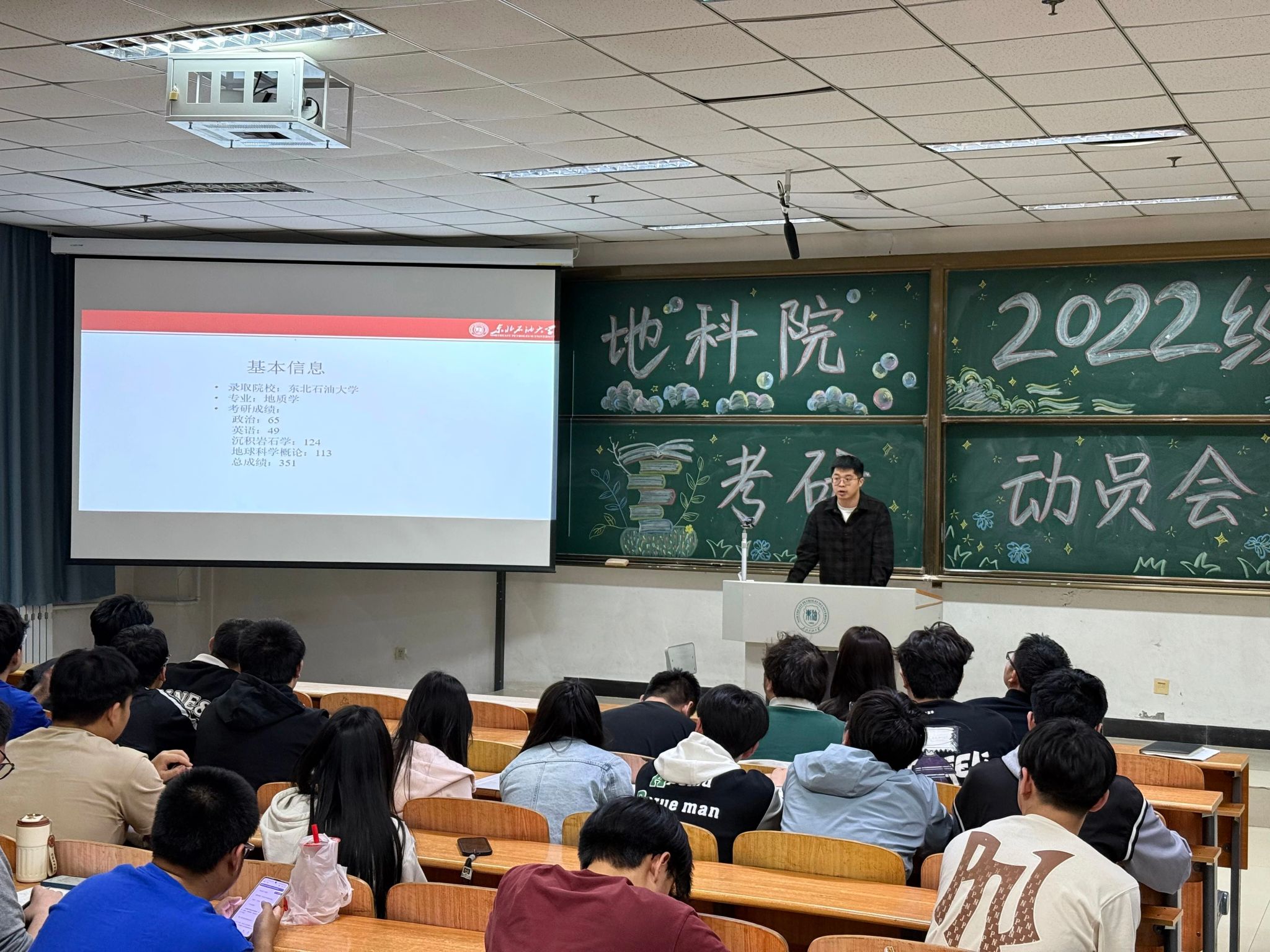 为激发学生考研热情,助力学子科学规划备考,5月15日晚,beat365平台官方网站于教学主楼C102举行“拼搏今朝,收获未来”2022级考研动员会。学院党委副书记王钢、资源勘查系主任蒋飞、勘查技术系主任王宁、2022级辅导员李海悦、优秀研究生代表、2021级优秀考研学生代表以及2022级本科生参会。